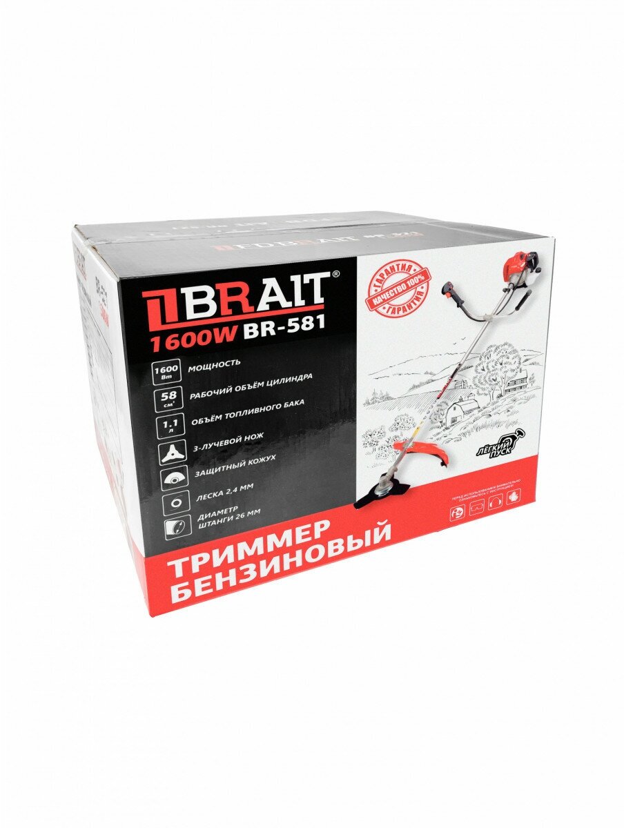 Триммер бензиновый BRAIT BR-581 (1,60кВт., 0,58 см, 2Т двиг., нож 3T, леска 2,4, штанга 26мм.