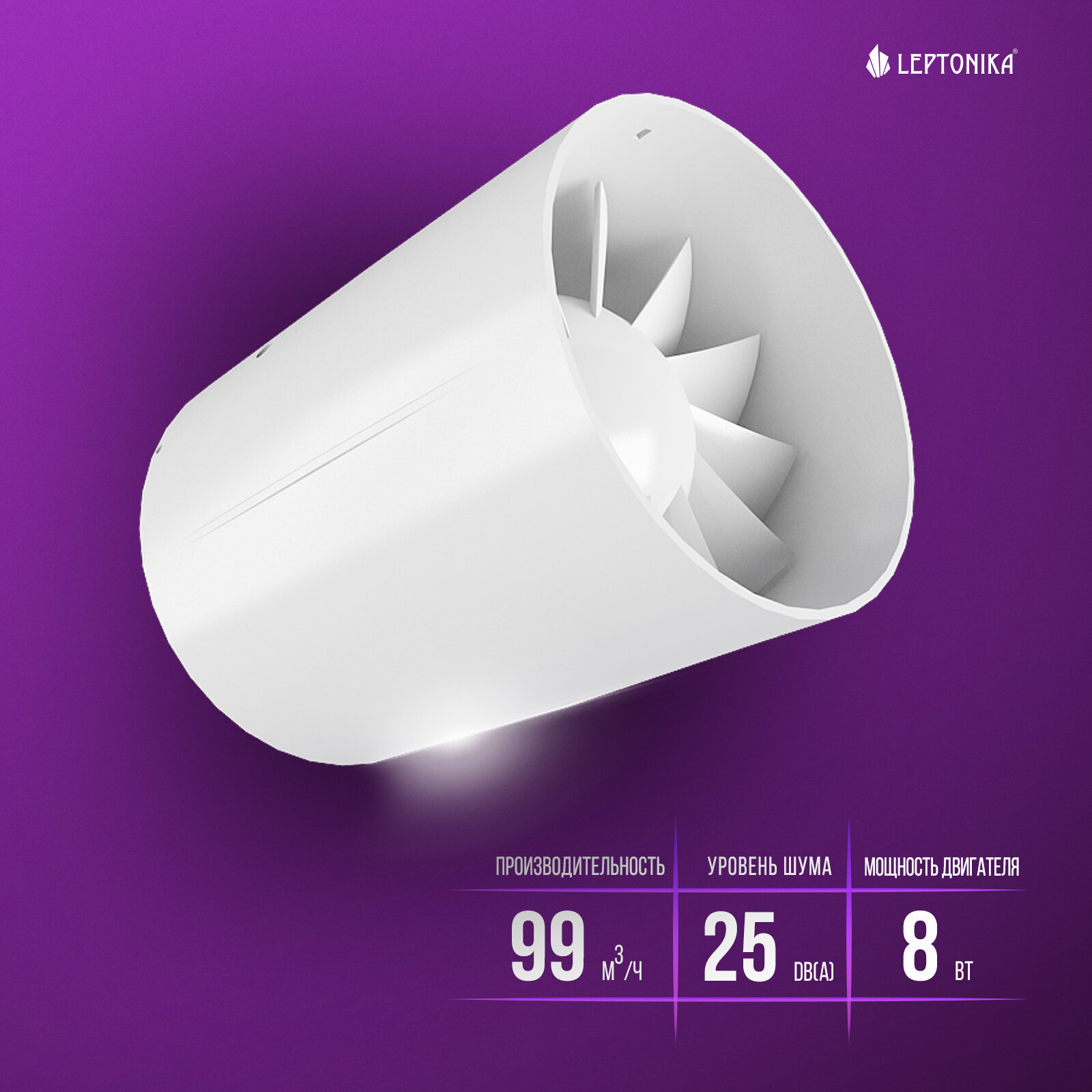 Вентилятор канальный Leptonika Сканди 100 мм бесшумный, 25 дБ, 99 м3/ч, 8Вт информация: