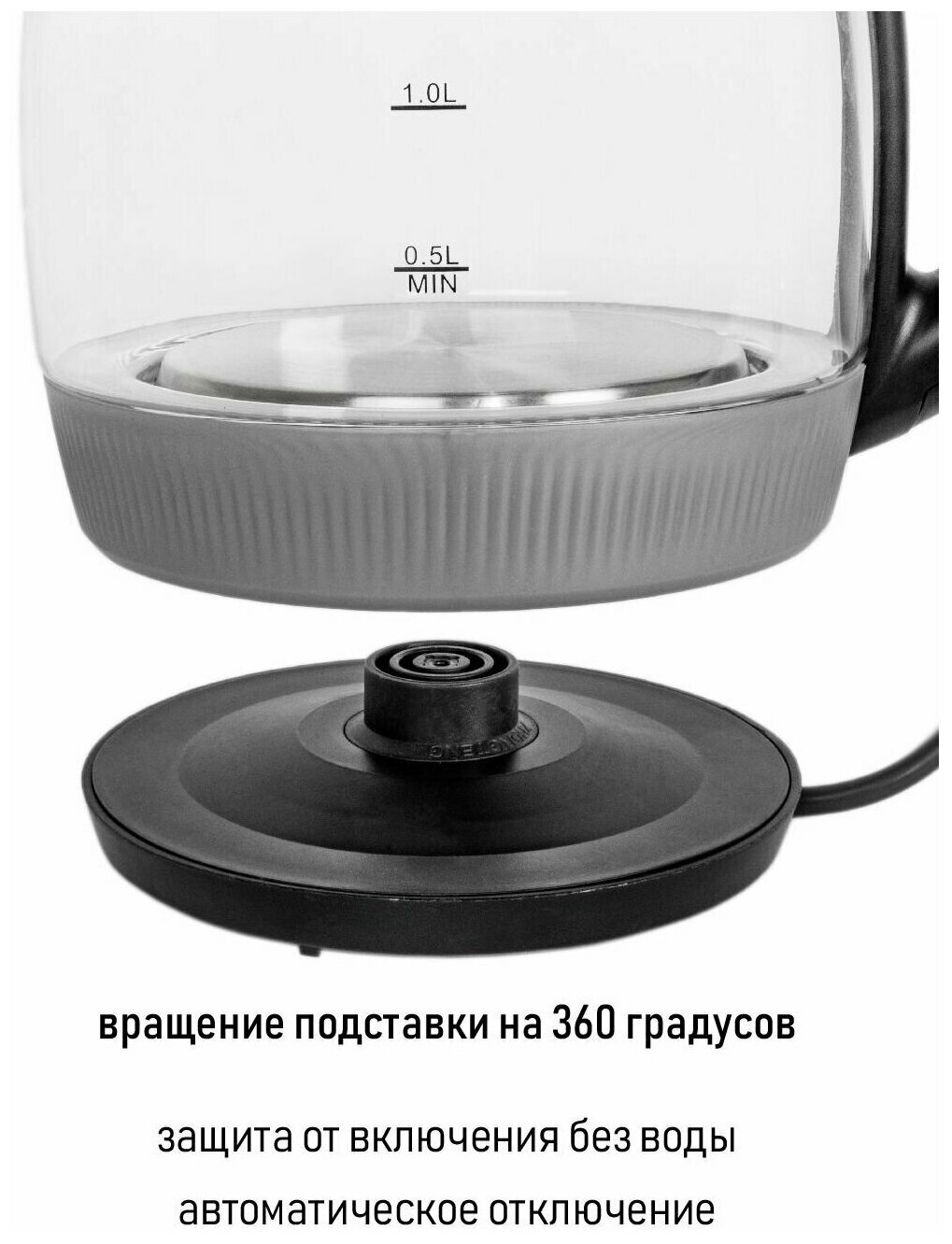 Чайник электрический стеклянный LEX LXK 30010-1, объем 1,2 л, подсветка.