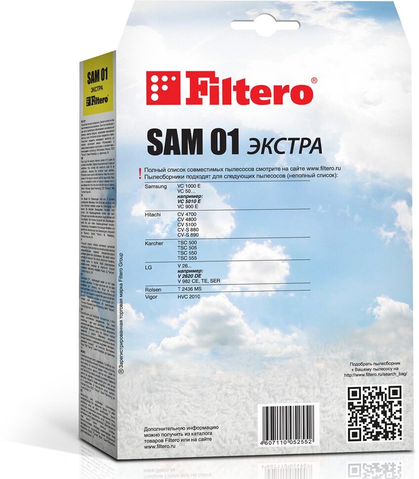 Мешки для бытовых пылесосов Samsung, LG, Karcher, Vigor, Hitachi Filtero SAM 01 экстра, (4 штуки)