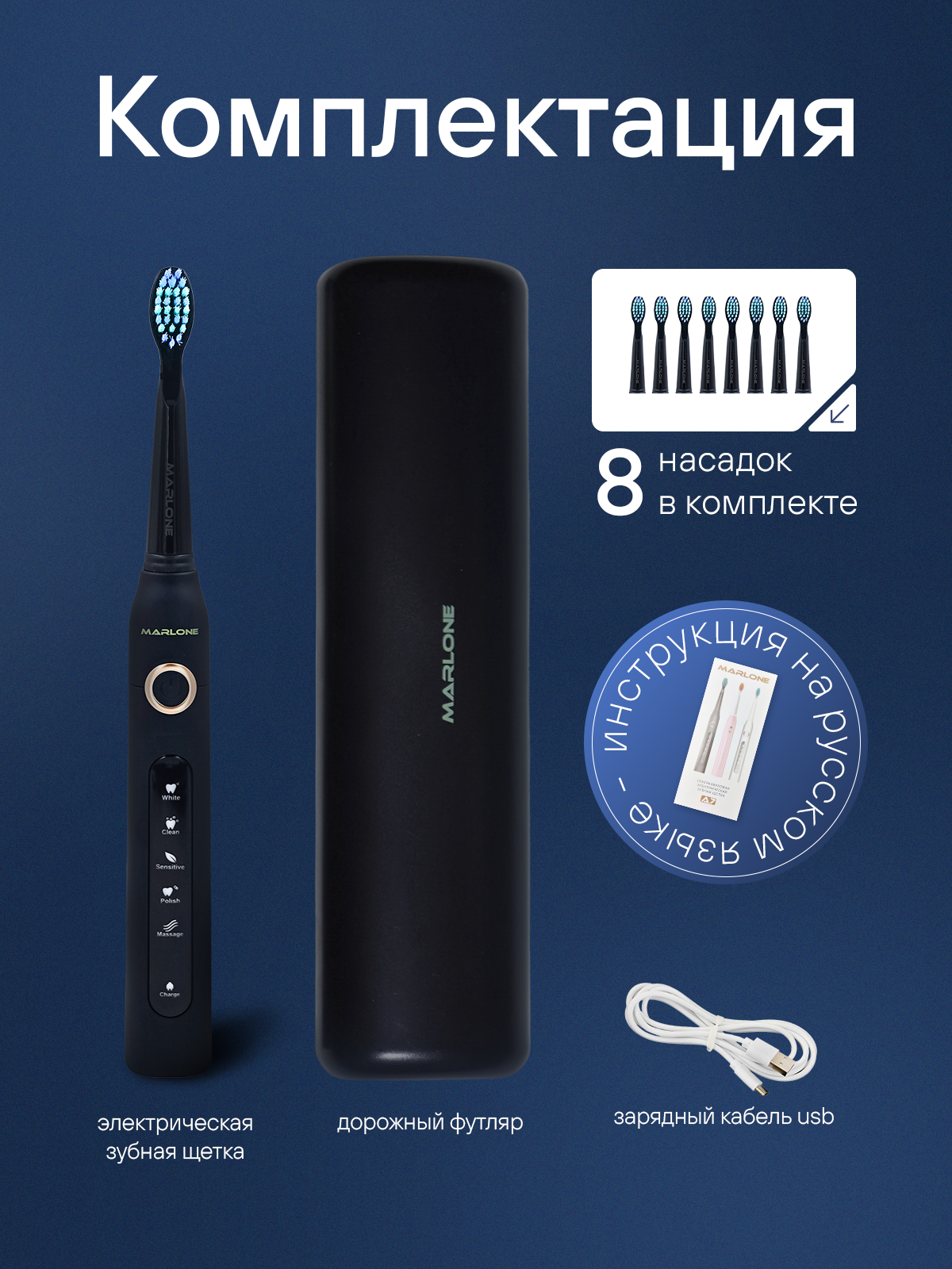 10 цен на Электрическая ультразвуковая зубная щетка Marlone A7 черная 8 насадок и дорожный кейс