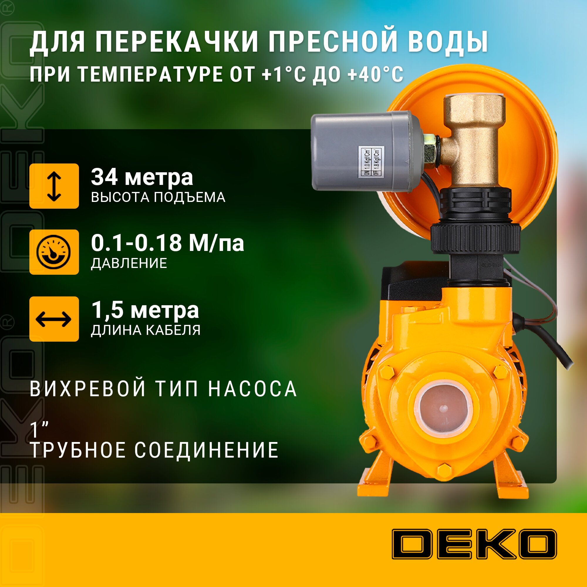Насосная станция DEKO DKJP450, 450Вт, 45 л/мин, 2л информация: