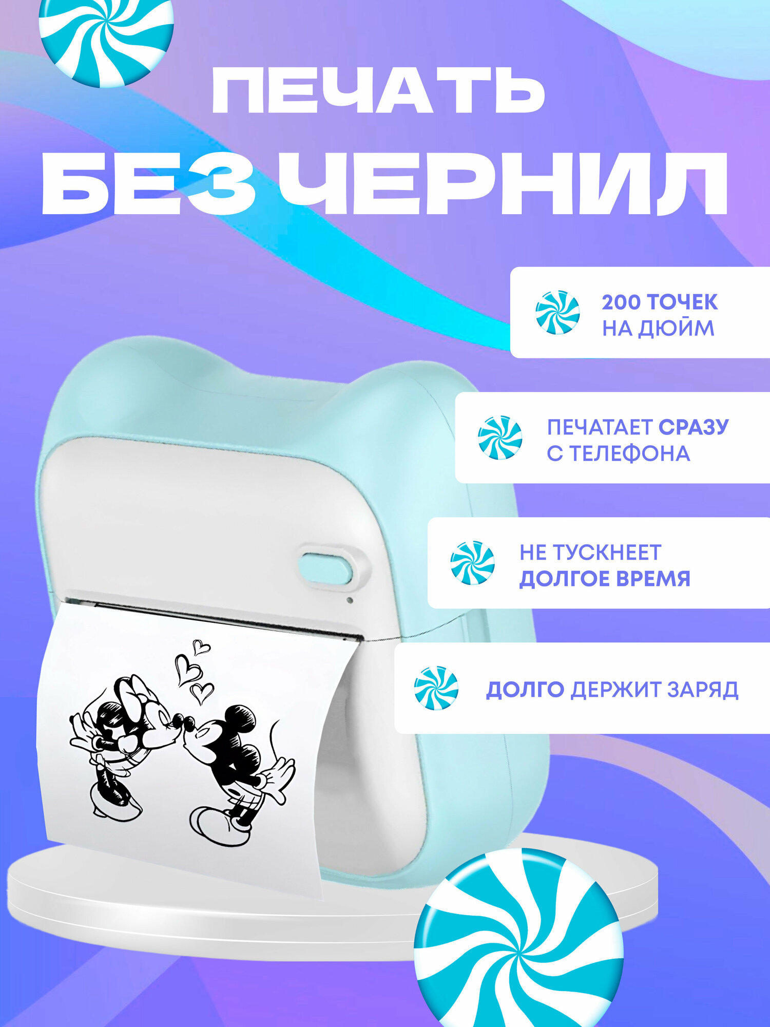 Мини принтер для телефона портативный без чернил