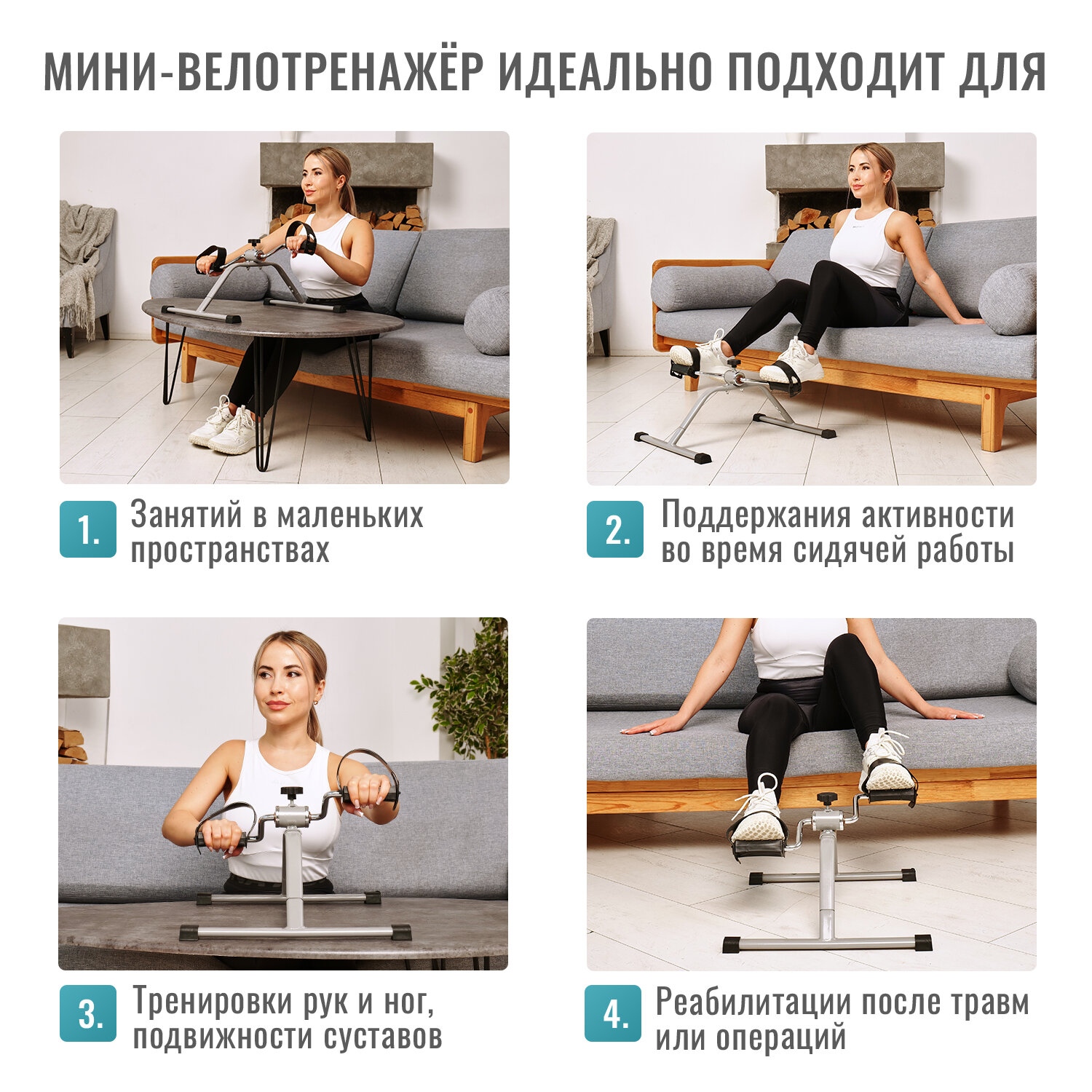 10 цен на Мини велотренажер DFC W003XG Серый/для рук и ног/портативный кардиотренажер/велосипед для дома