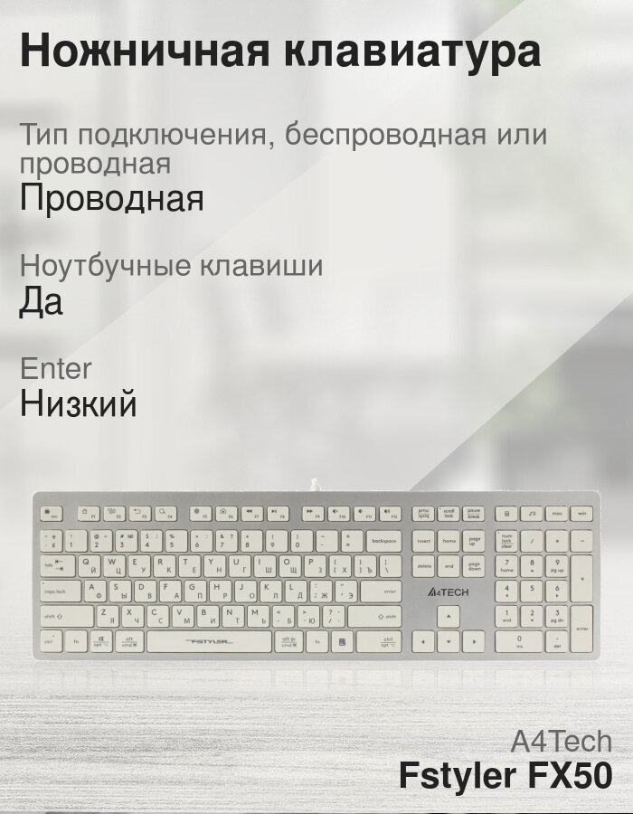 Клавиатура проводная A4TECH Fstyler FX50, USB, 109 кнопок, серая, 1624628, 513918 4 218 ₽