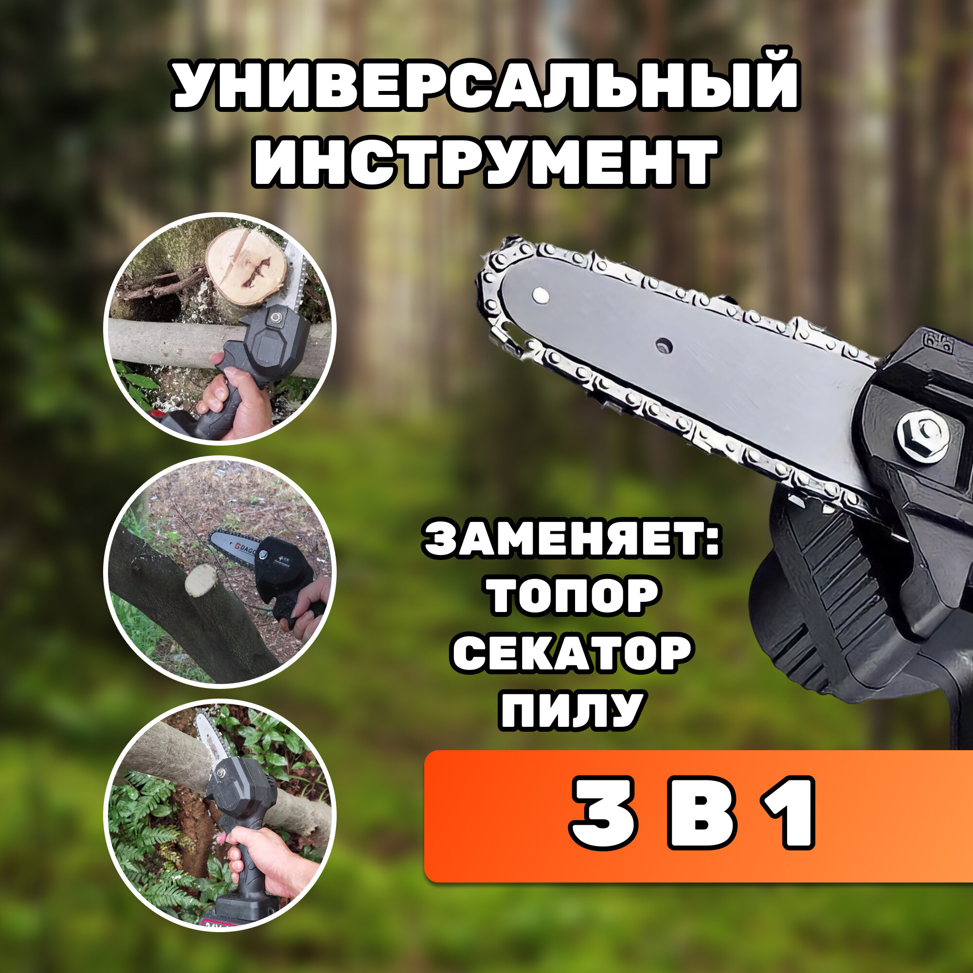 Цепная мини пила аккумуляторная ручная садовая, Портативная цепная аккумуляторная бензопила