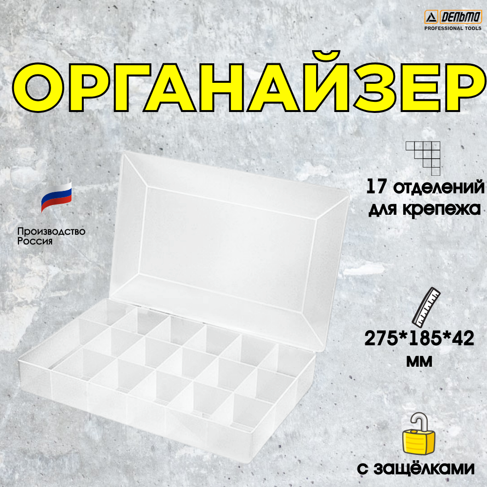 Органайзер Дельта, универсальный, 17 отсеков, пластик, замок, бесцветный, 27.5 см x 18.5 см х 4.2см 401 ₽