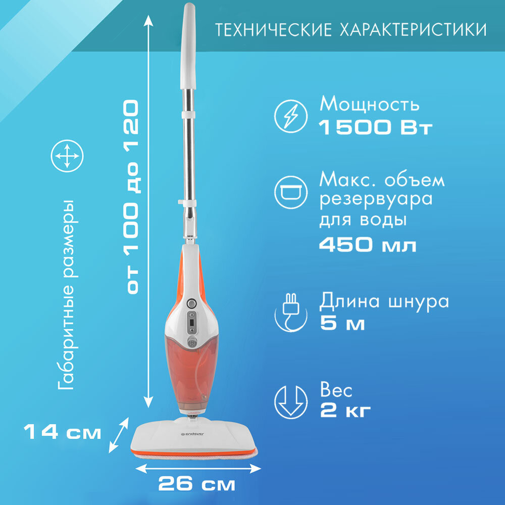 Паровая швабра Endever Odyssey Q-622, белый/оранжевый информация: