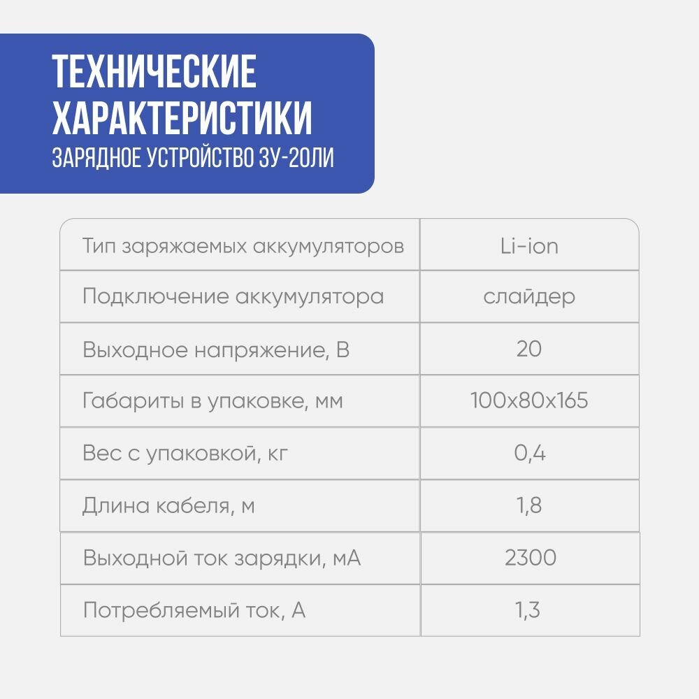 Зарядное устройство ЗУ-20ЛИ (семейка) 20 В 2300 мА диолд информация: