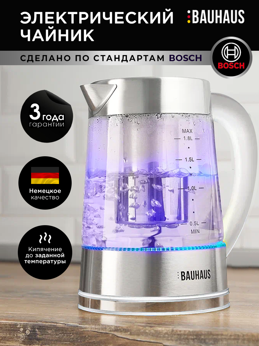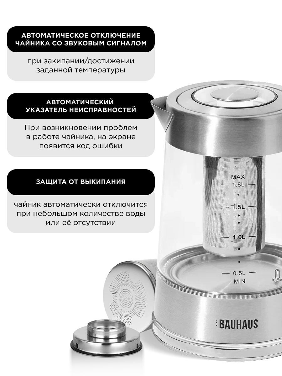Отзывы на Чайник электрический BAUHAUS стеклянный, умный электрочайник, белый