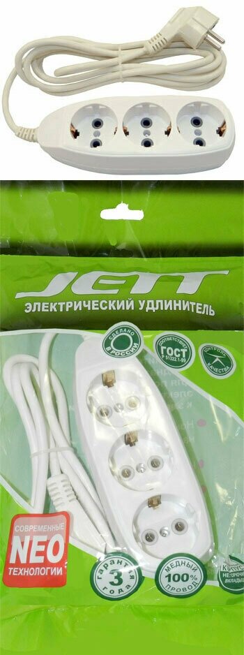 Отзывы на Удлинитель Сетевой ( Бытовой) JETT 7 метров с заземлением 3500 вт