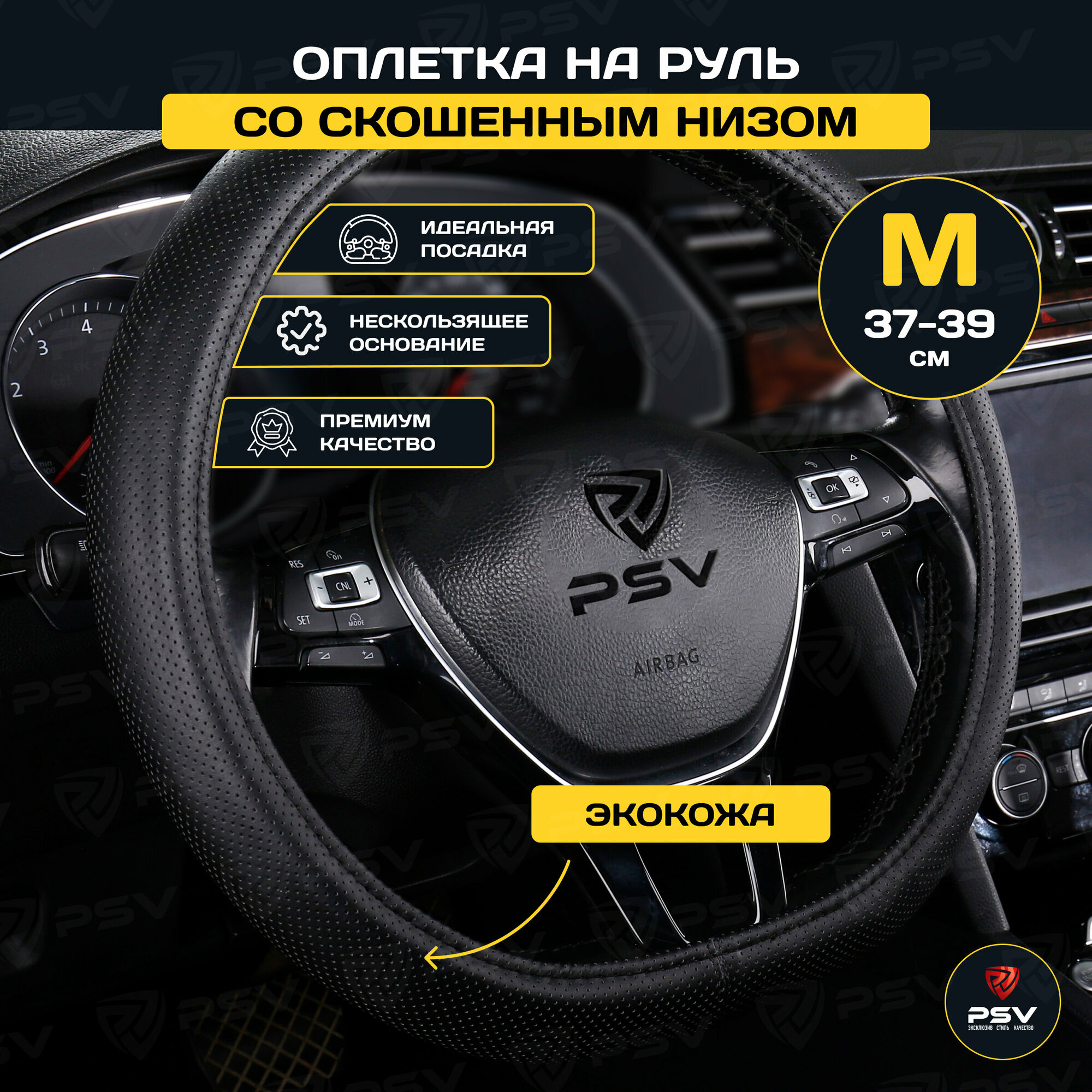 Отзывы на Оплётка на руль PSV FACTOR PLUS CORNER со скошенным низом (Черный) M 37-39см , перфорированная экокожа, 136018