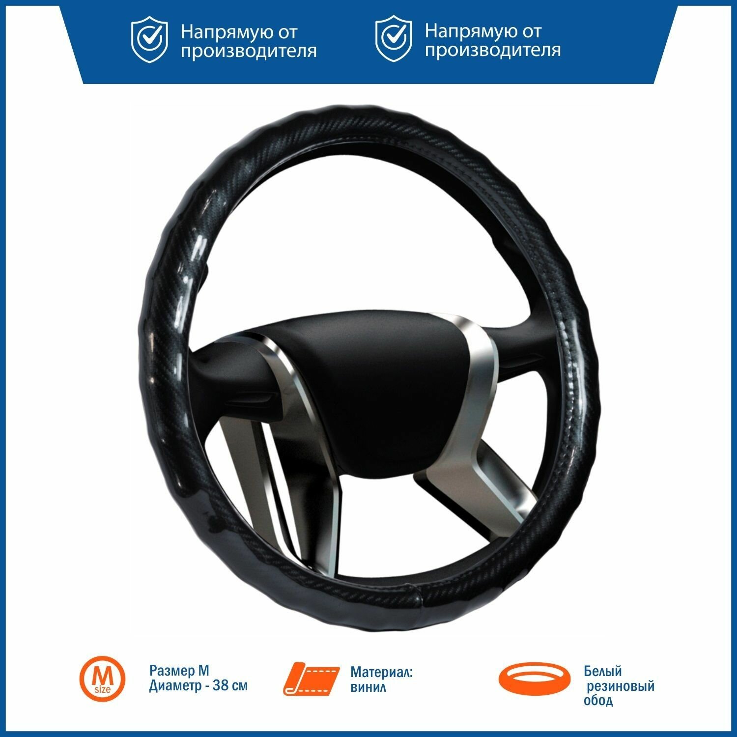 Оплетка на руль универсальная из экокожи «CARBON» М 37-39 см (чёрная, строчка чёрная) belais #21608