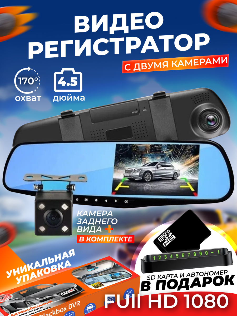 Автомобильный видеорегистратор, с камерой заднего вида, 2 камеры, 1920x1080