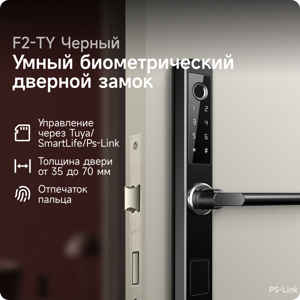 Отзывы на Умный дверной замок PS-link F2-TY WIFI, с датчиком отпечатка пальца, защита IP65, Чёрный