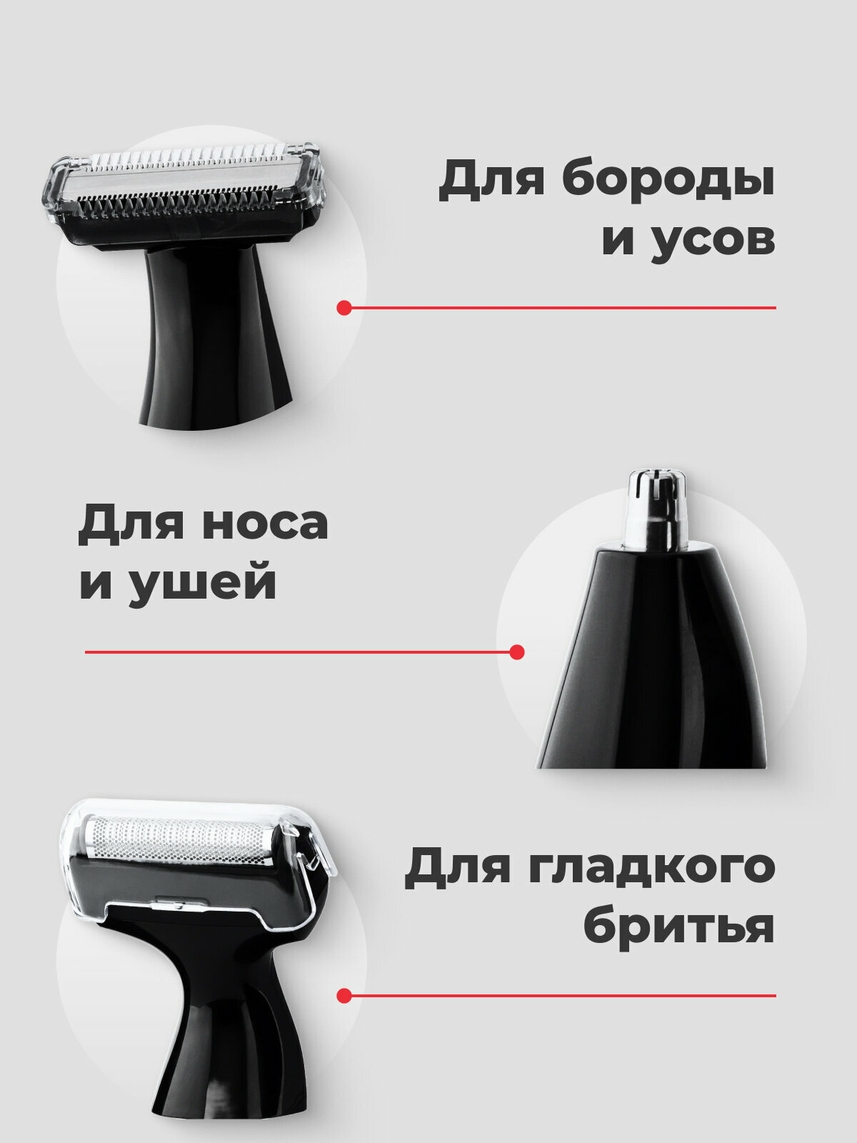 | Назначение | для бороды и усов / для бровей / для стрижки в носу и ушах / для стрижки волос / для тела |