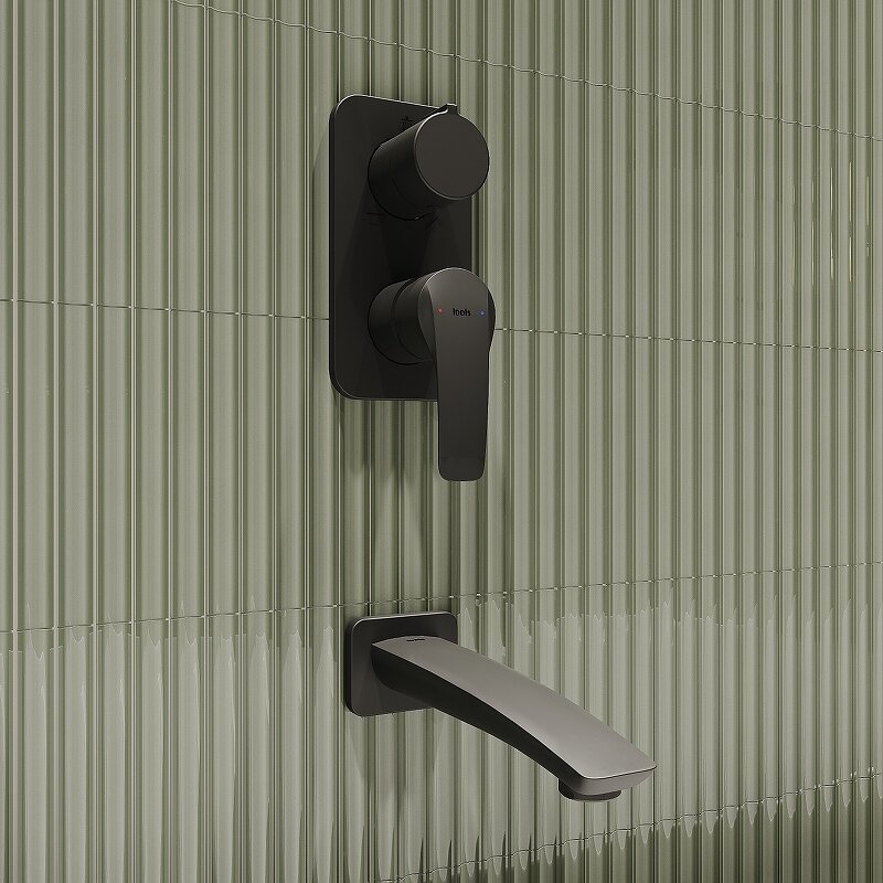 Душевая система IDDIS скрытого монтажа с тропическим душем, ручным душем и изливом, черный матовый, Ray, (RAYBL03i68)