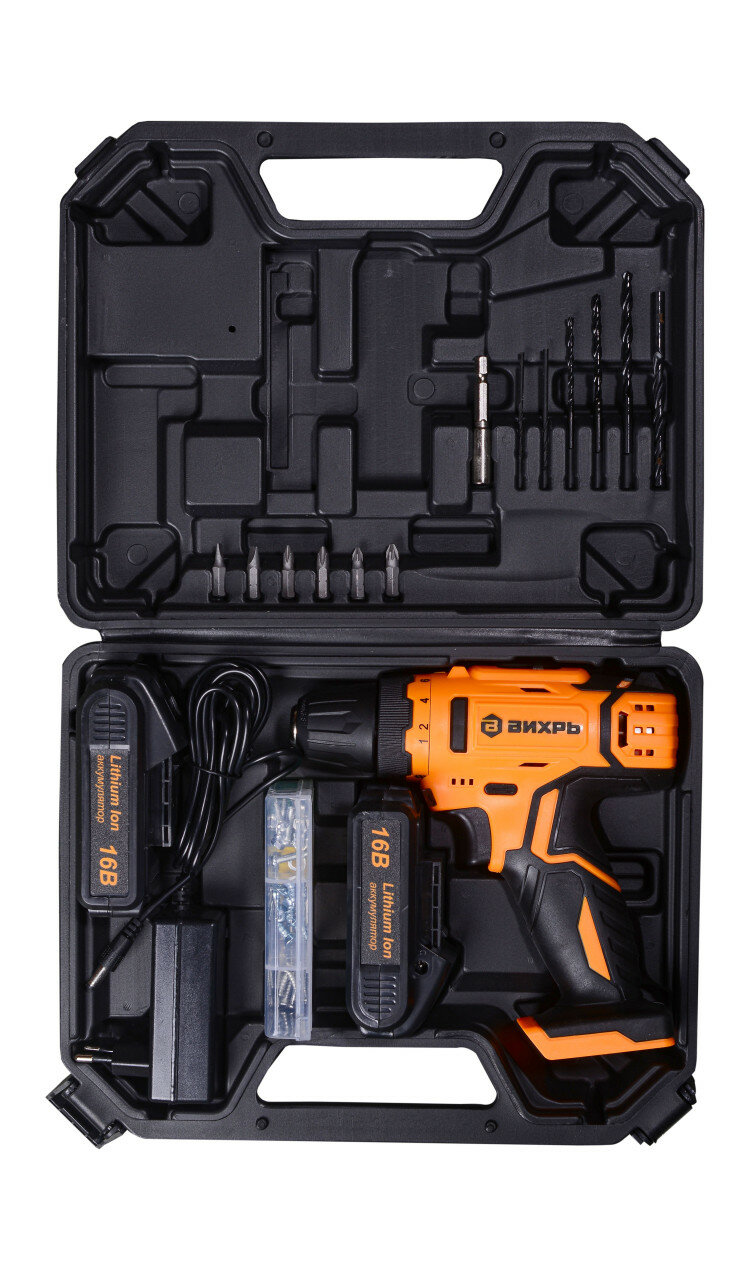 Акция! Дрель-шуруповерт аккумуляторная ДА-16Л-2КА с набором оснастки 65 предметов Вихрь, , Шт информация: