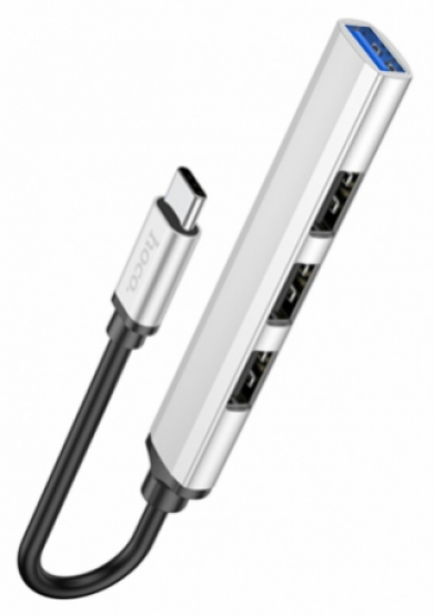Хаб HUB Type-C на 4USB HB26 HOCO серебро