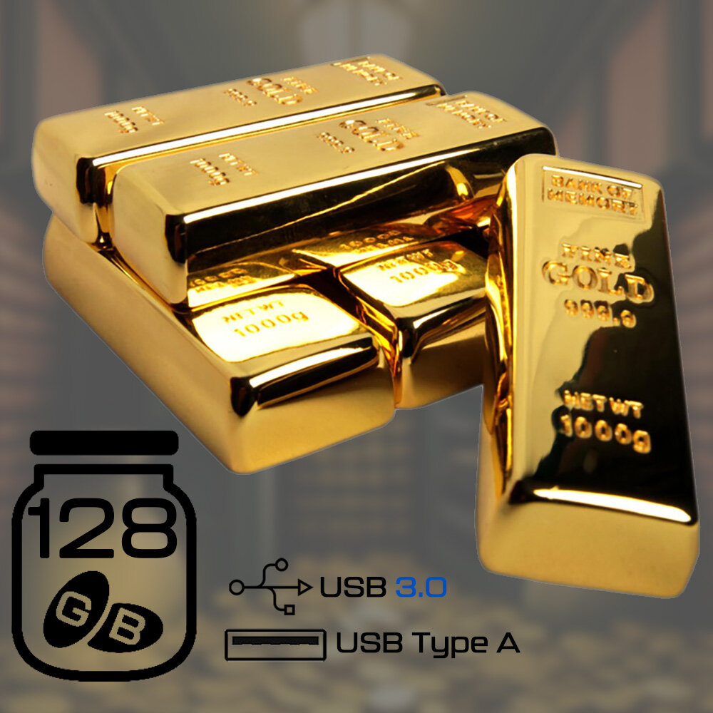 10 цен на Металлическая флешка в виде слитка золота (128 Гб / GB USB 3.0 Золотой/Gold Gold_bar Флеш-карта Голд бар)