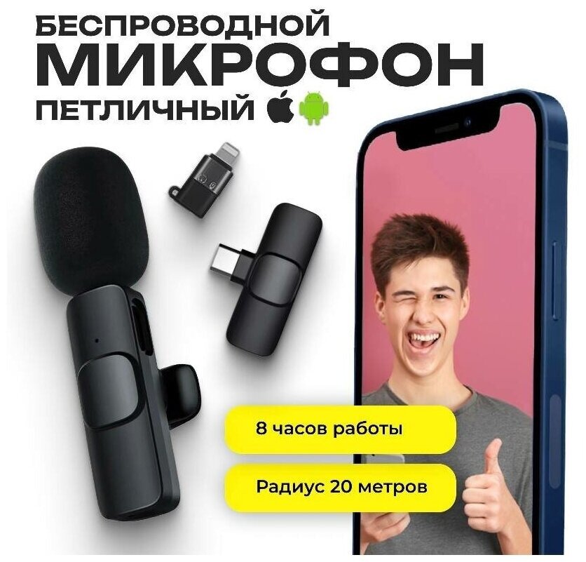 Беспроводной петличный микрофон K8 для с шумоподавлением информация: