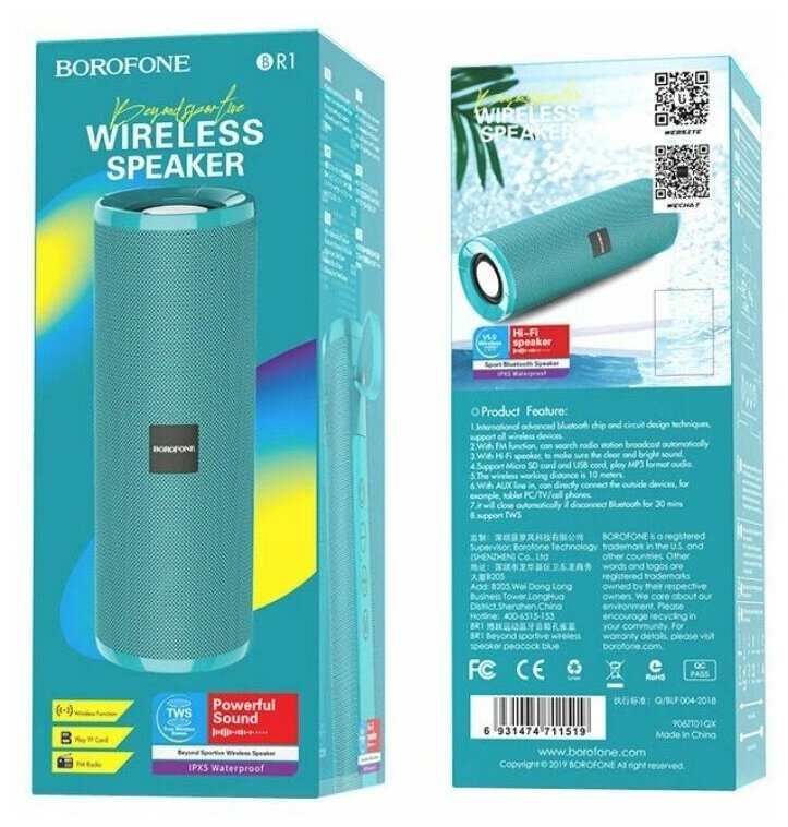 Беспроводная Bluetooth колонка Borofone BR1 Beyond, Бирюзовая(зеленая) информация: