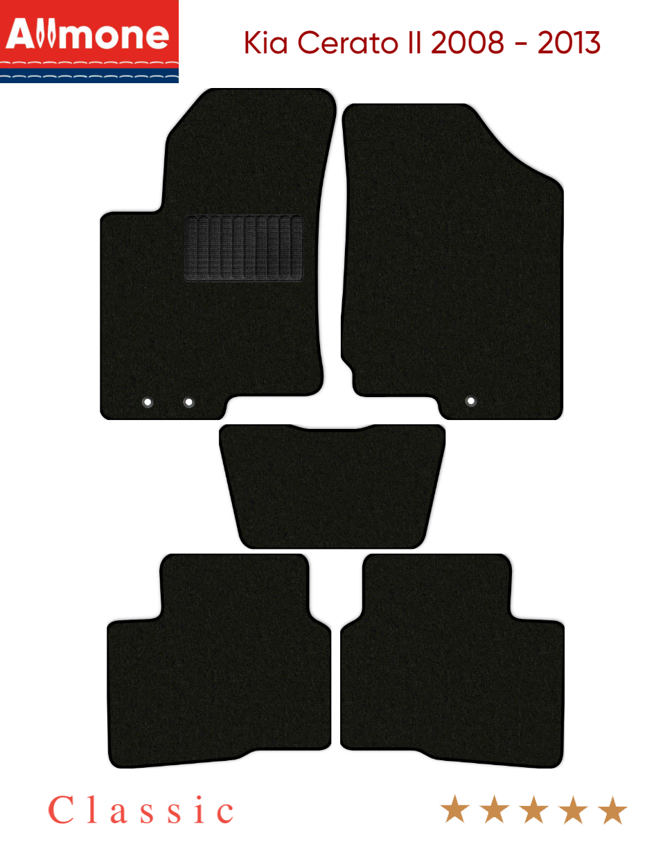 Коврики в салон текстильные Allmone "Классик" для Kia Cerato 2 (TD) 2008 - 2013, черные, 5шт. / Киа Церато 2 информация:
