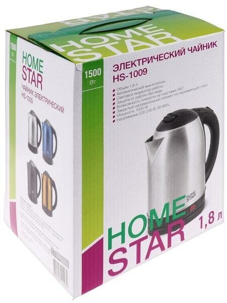 HomeStar Чайник электрический HOMESTAR HS-1009, металл, 1.8 л, 1500 Вт,