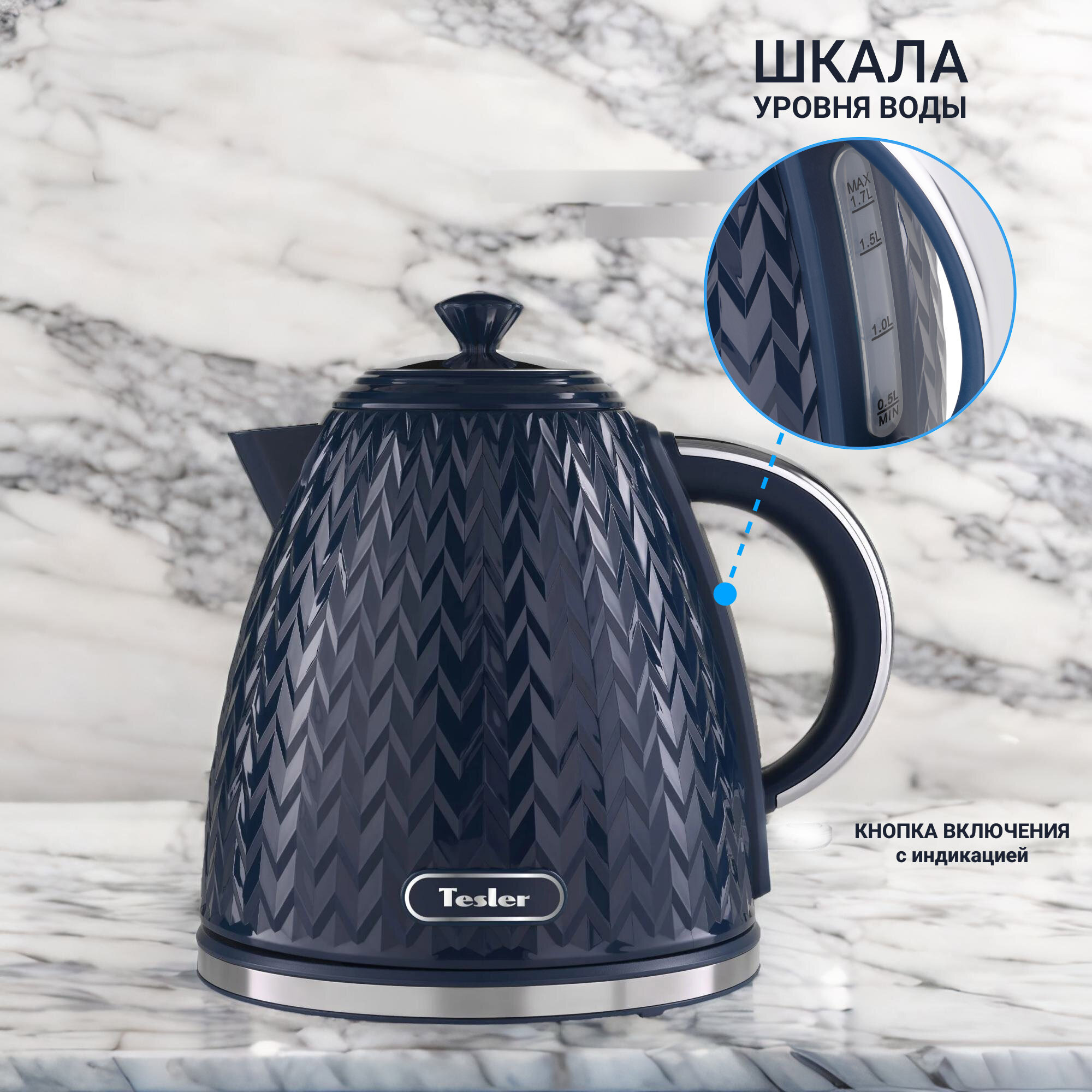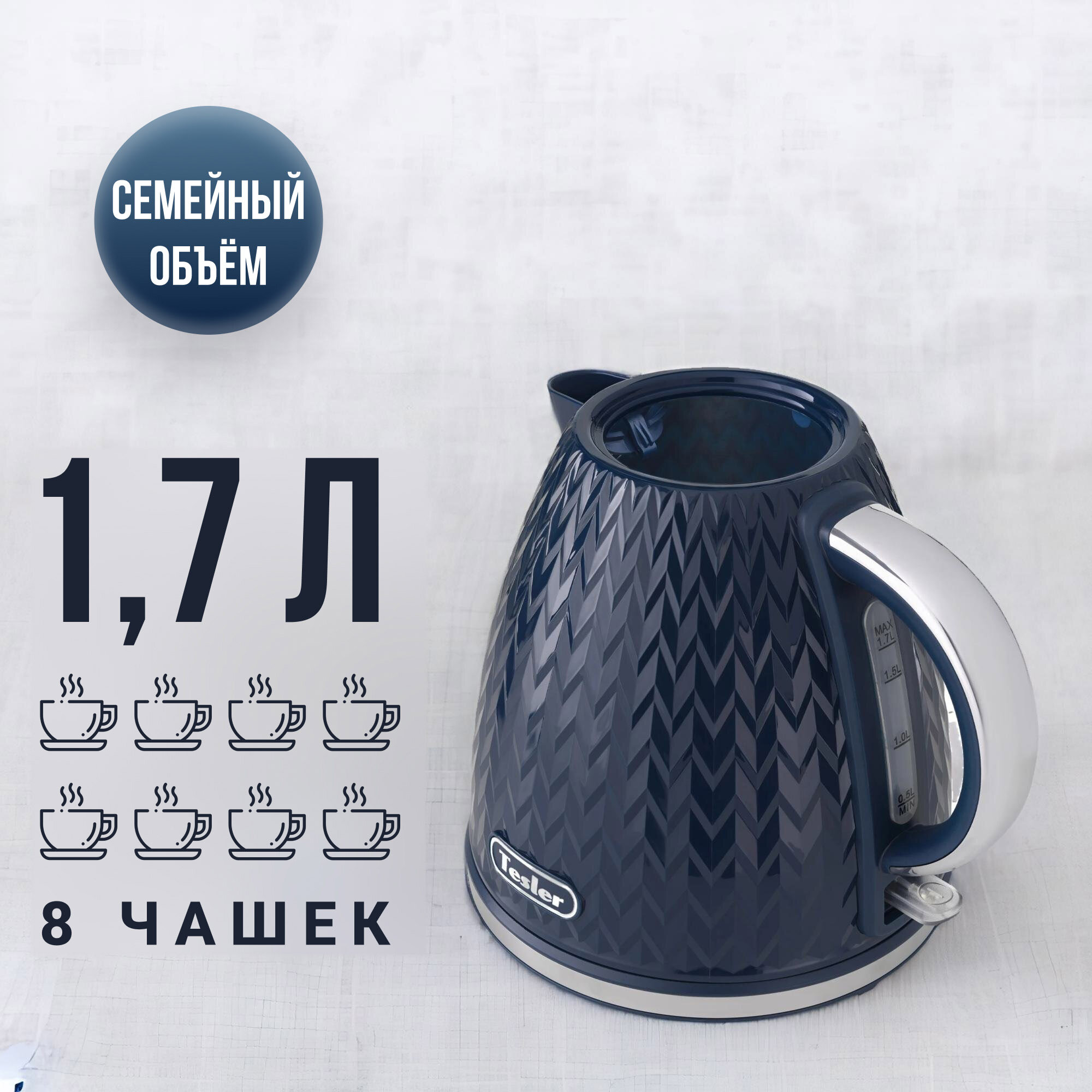Чайник электрический TESLER KT-1704 NAVY BLUE информация: