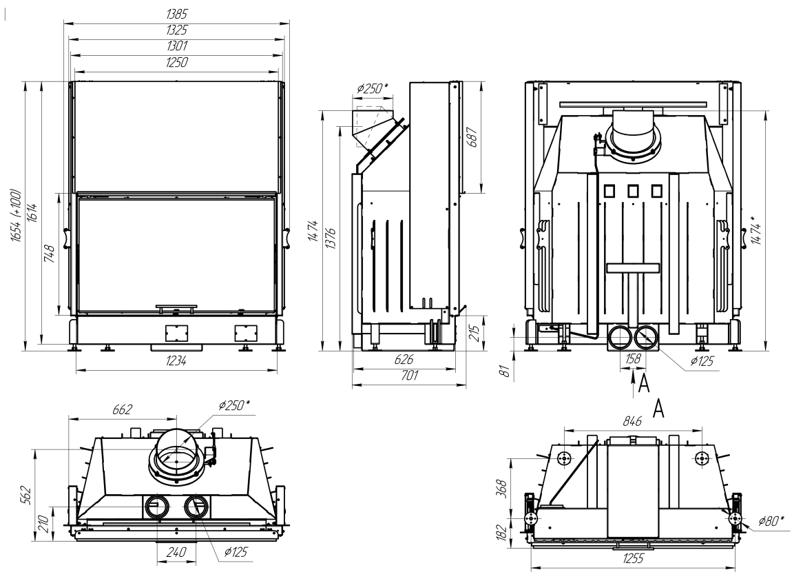 Каминная топка ЭкоКамин Вега 1200 Р футеровка под кирпич подовое горение (TBN1200B) информация: