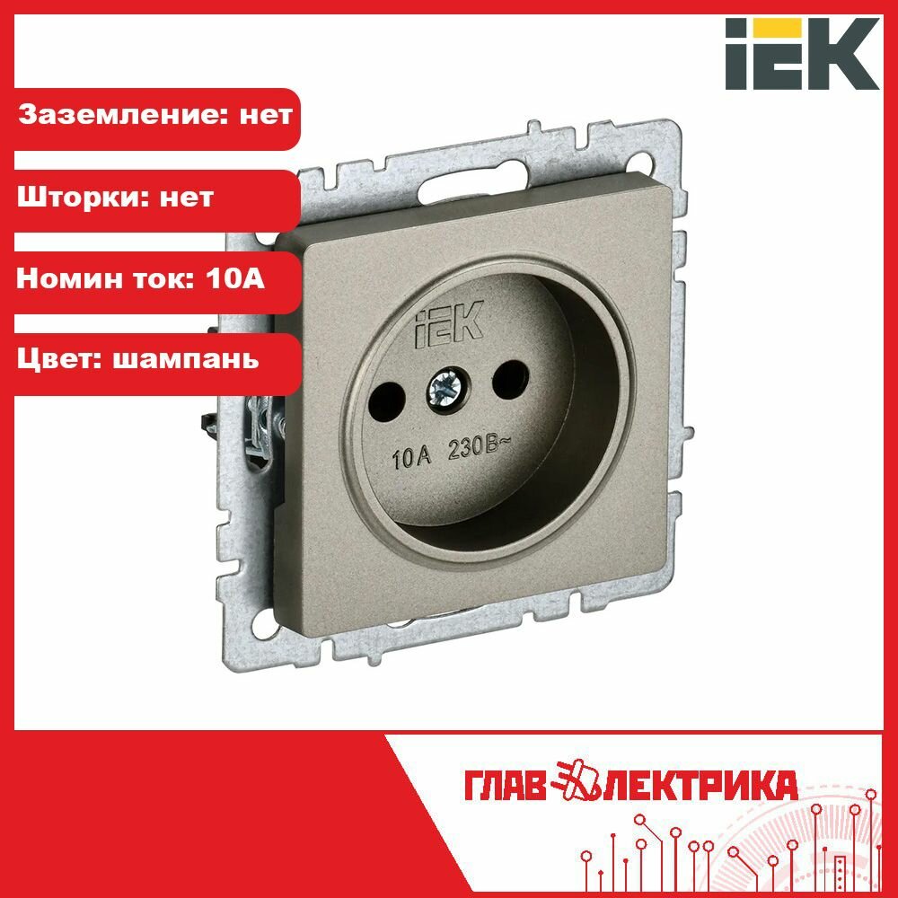Розетка BRITE РС10-1-0-БрШ 10А без заземл. без защ. шторок шампань BR-R10-10-K37 IEK информация:
