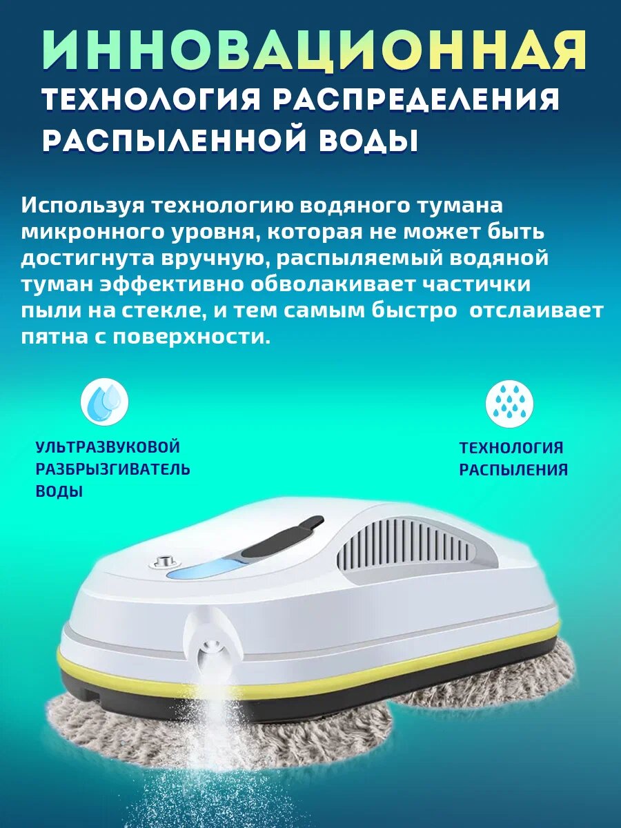 Умный робот мойщик окон с ультразвуковым распылителем, Робот для мытья окон зеркал плитки на пульте управления информация: