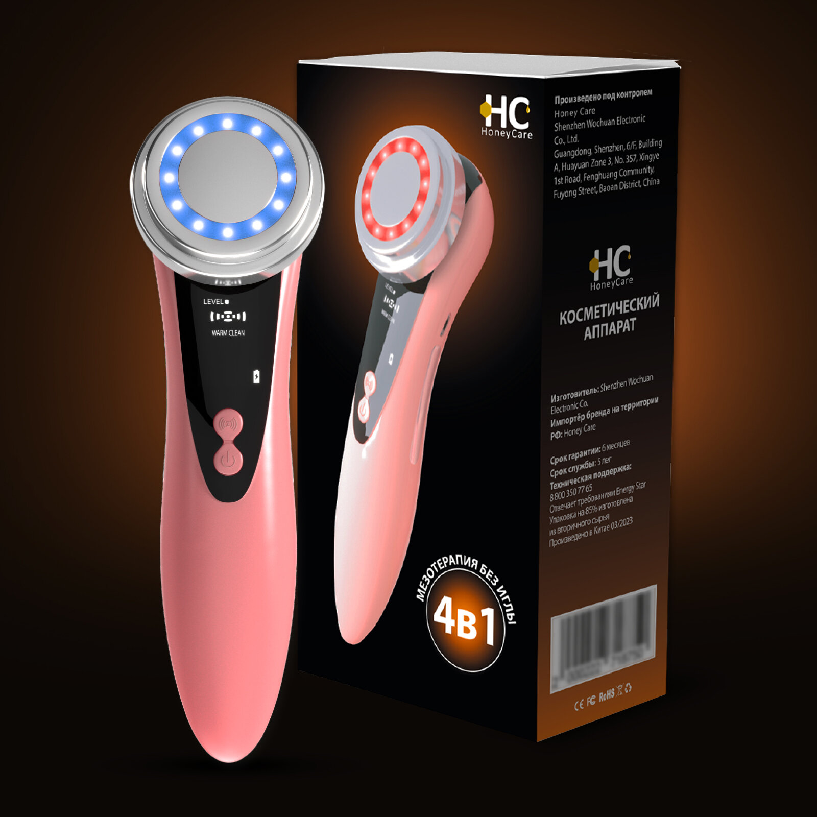 10 цен на Косметологичекий аппарат для лица 4 в 1 HoneyCare с RF лифтингом, мезотерапией и LED терапией. Лифтинг аппарат для лица. Подарок на Новый Год.