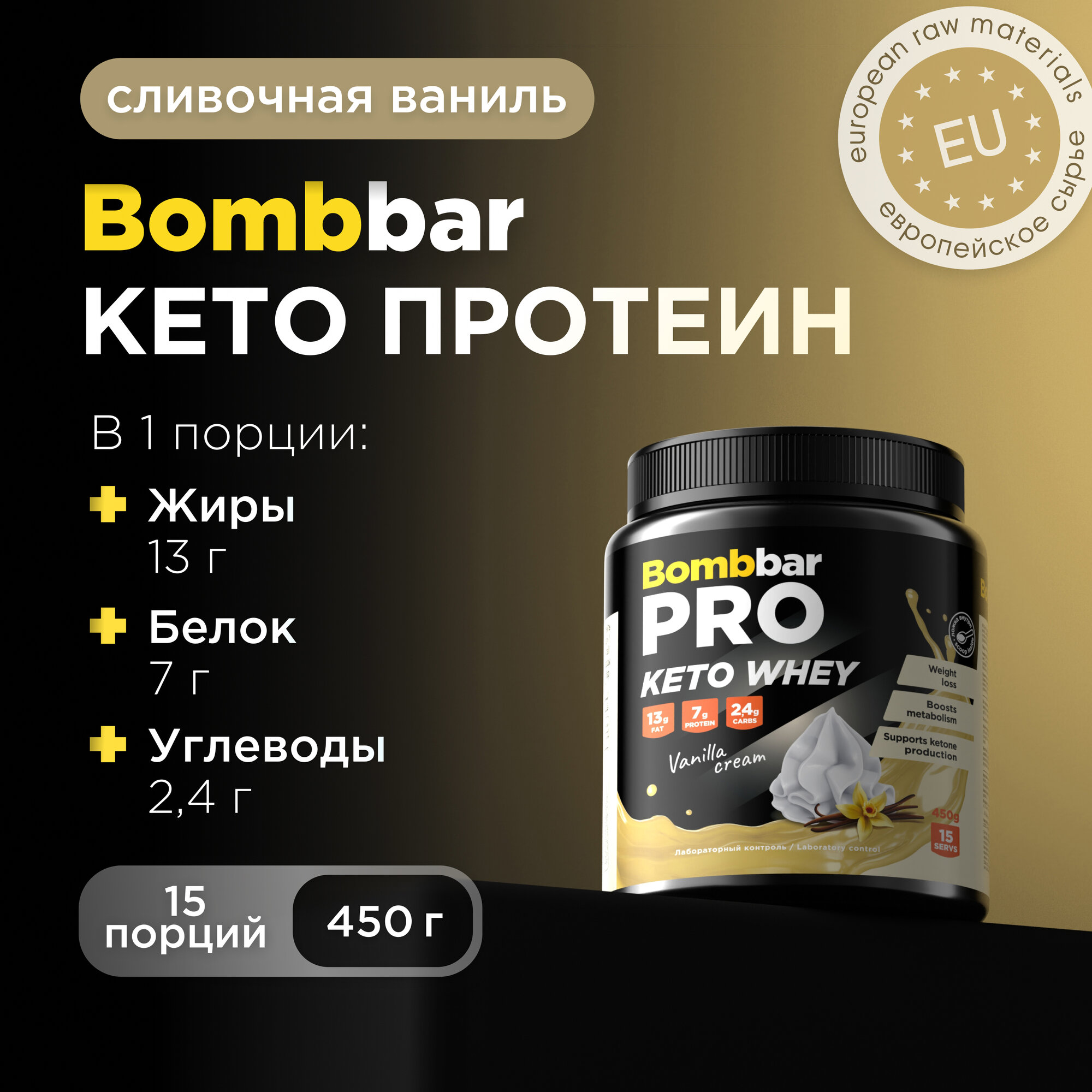 10 цен на Bombbar Pro Keto Whey Protein Протеиновый коктейль Кето без сахара "Сливки - ваниль", 450 г