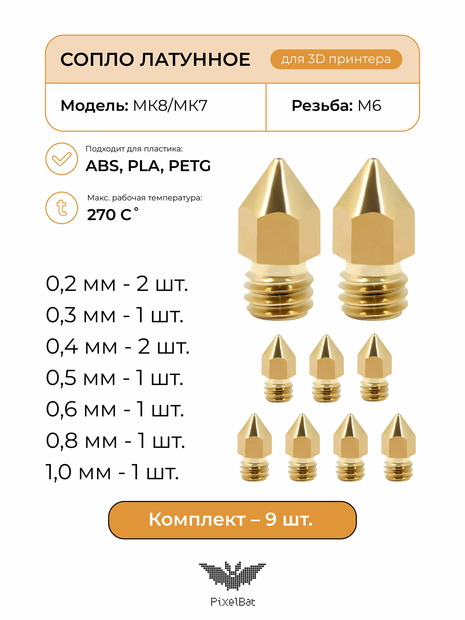 Мы выбрали 10 лучших цен на Сопло латунное комплект 9шт, для 3D принтера MK8/MK7. Перед тем как купить Сопло латунное комплект 9шт, для 3D принтера MK8/MK7 посмотрите найденные предложения из Яндекс Маркета и других сайтов на основе XML фидов.
