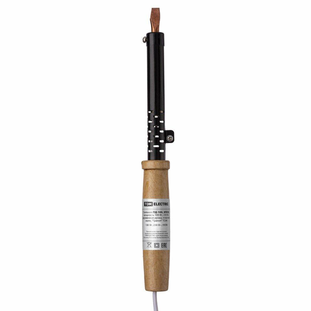 10 цен на Паяльник сетевой, 100 Вт, 230 В, рукоятка дерево, плоское, с подставкой, TDM Electric, Гранит ПД-100, SQ1025-0405