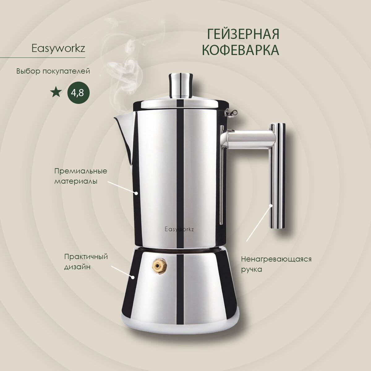 Отзывы на Гейзерная кофеварка EASYWORKZ из нержавеющей стали на 10 порций, 500 мл