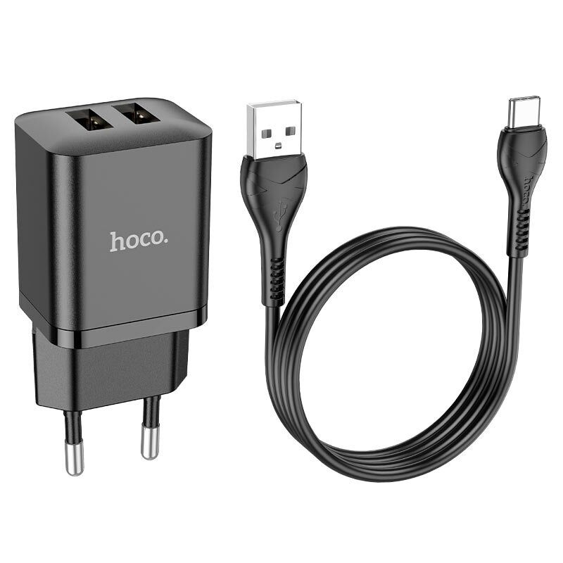 СЗУ Hoco N25 Maker, два порта 2.1A, с кабелем Type-C, черный информация: