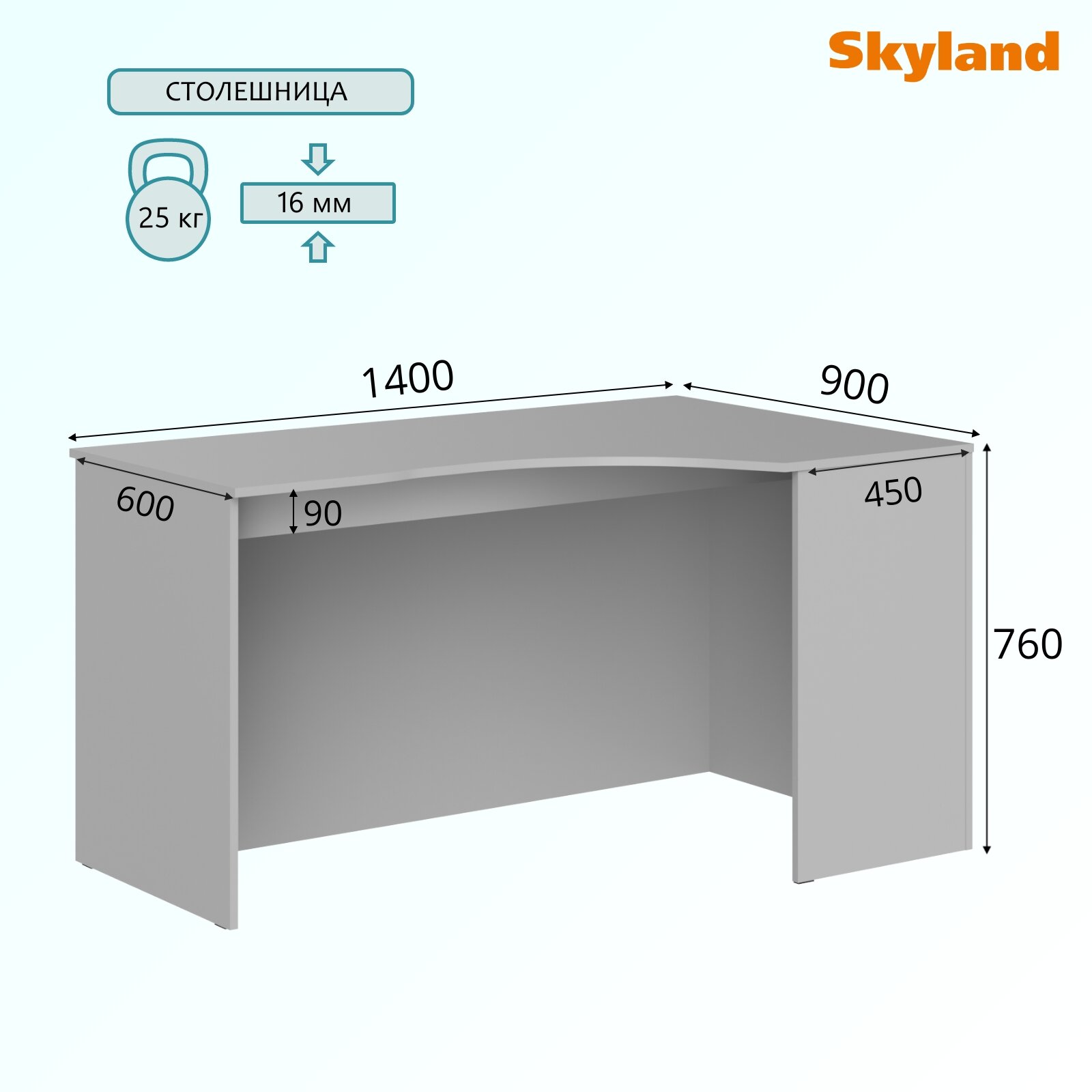 Стол эргономичный Skyland SE-1600L серый 1600x900x760 8 960 ₽