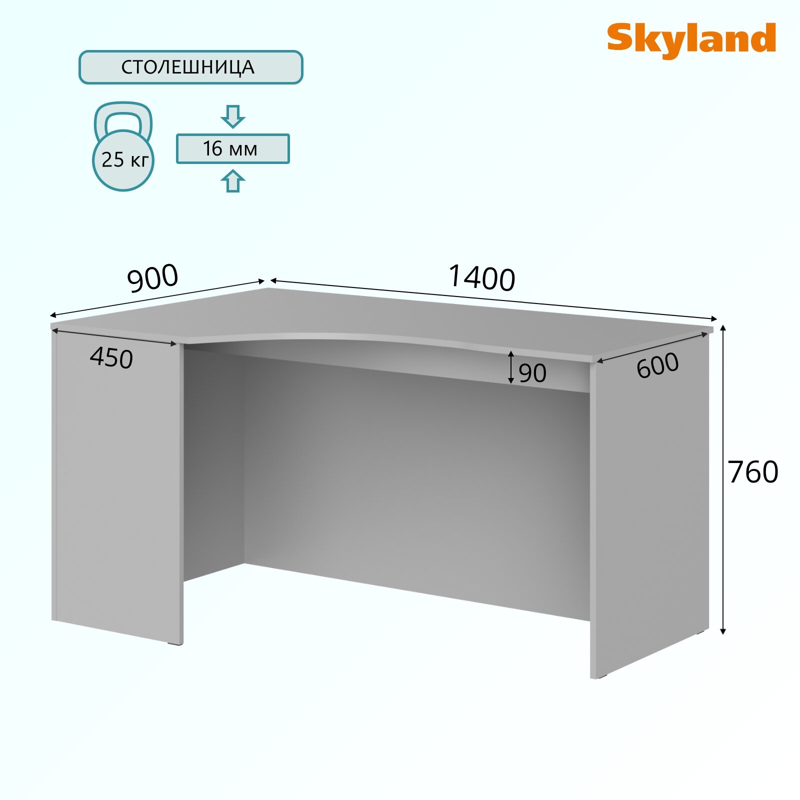 Стол эргономичный Skyland SE-1600L серый 1600x900x760 8 960 ₽