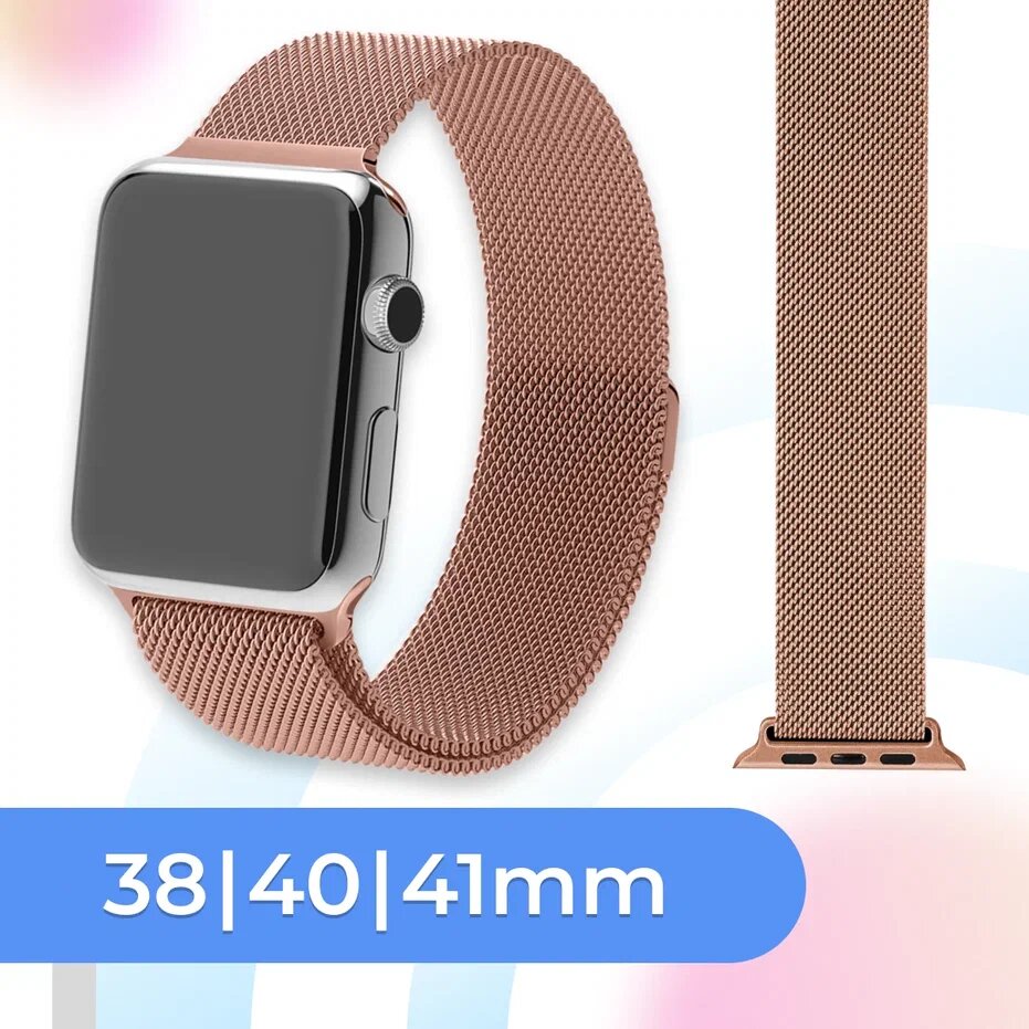 Металлический ремешок для умных часов Apple Watch 38-40-41 mm / Сменный браслет миланская петля для умных часов Эпл Вотч 1-9, SE серии / Розовый информация:
