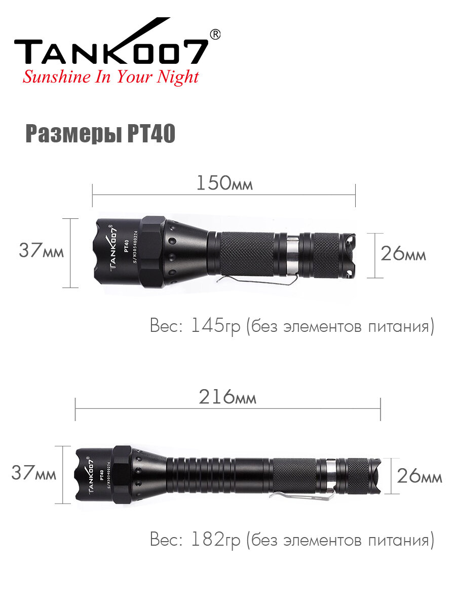 TANK007 PT40 Светодиодный фонарь с комплектацией информация: