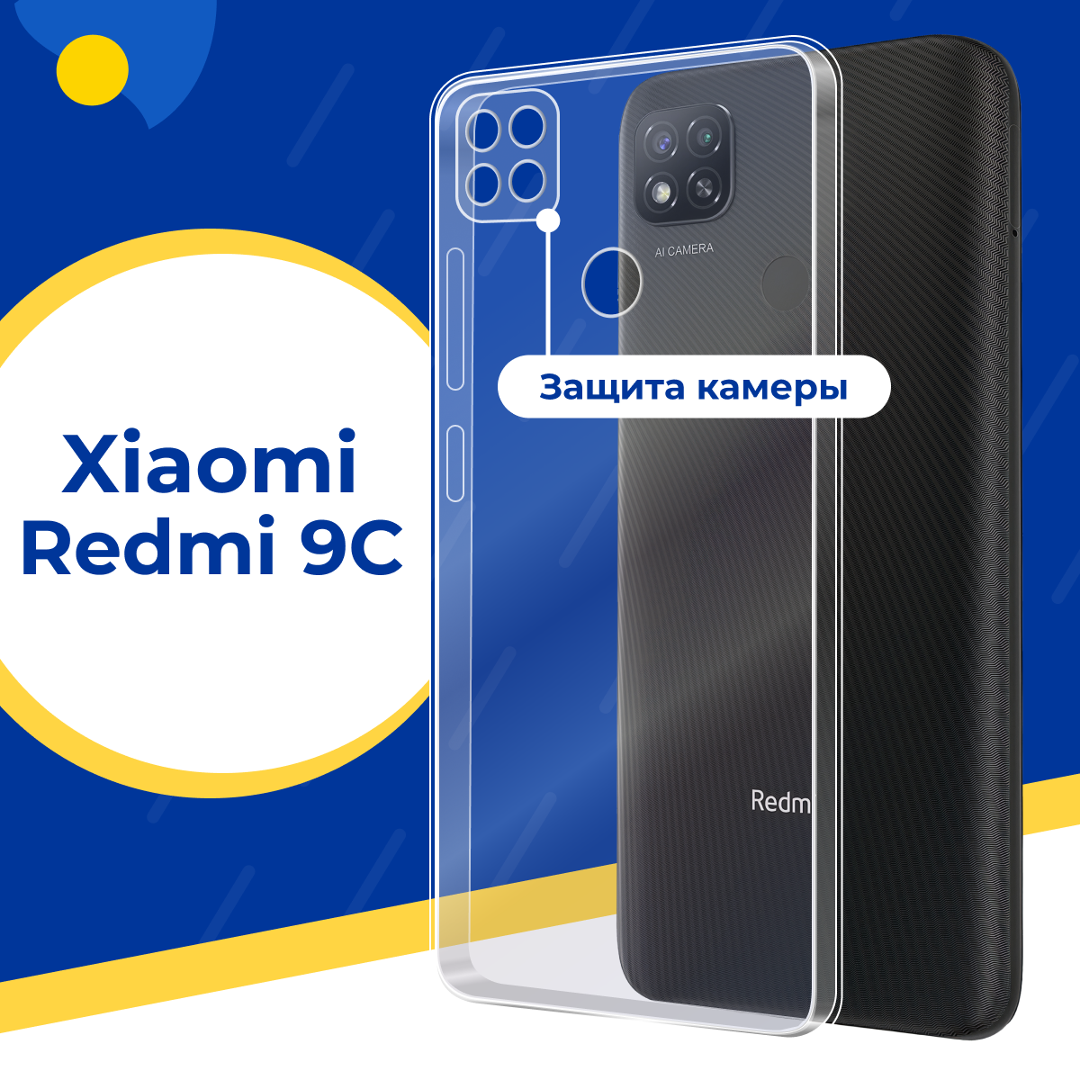 Силиконовый защитный чехол для телефона Xiaomi Redmi 9C / Тонкий противоударный чехол на смартфон Сяоми Редми 9С с защитой камеры / Прозрачный информация: