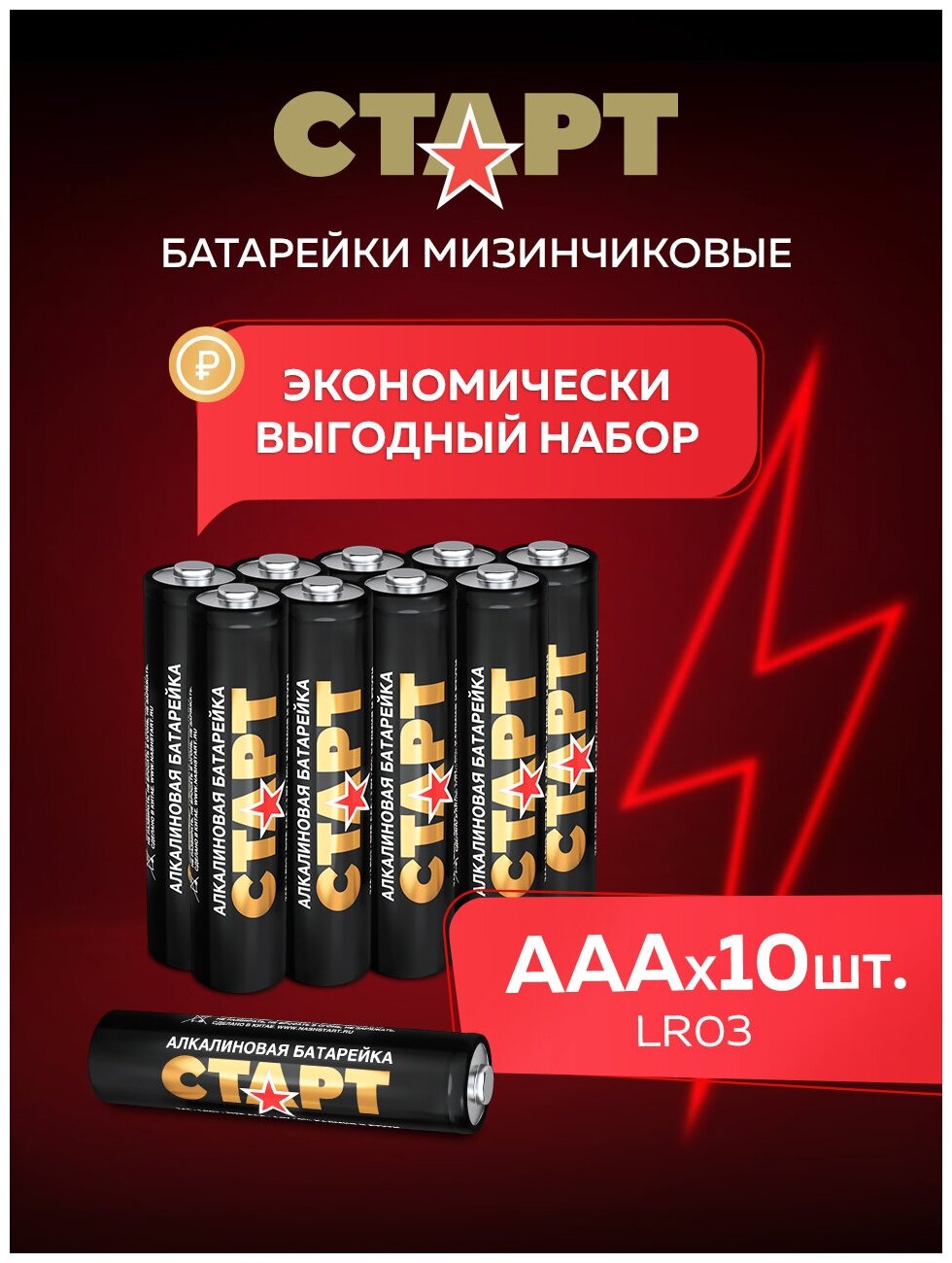 Батарейки Старт - Алкалиновые, типоразмер ААА ( Мизинчиковые) , 10 штук в блистере