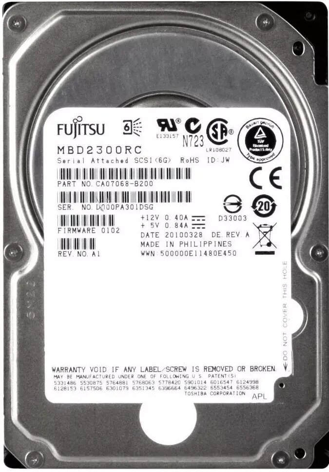 Жесткий диск Fujitsu MBD2300RC 300Gb SAS 2,5" HDD информация: