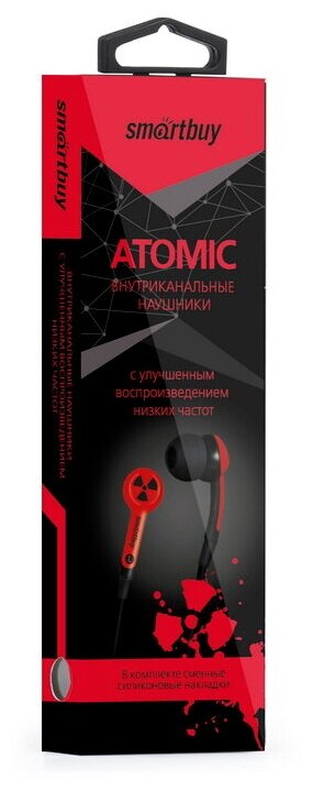 Наушники SmartBuy Atomic, mini jack 3.5 mm, красный информация: