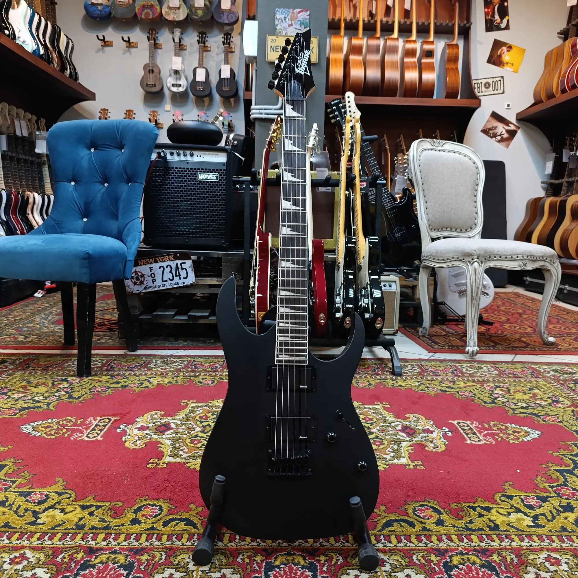 IBANEZ GIO GRG121DX-BKF BLACK FLAT электрогитара, цвет чёрный матовый, корпус махагони, гриф клён, накладка грифа палисандр, лады 24 Jumbo, мензура 25 23 300 ₽