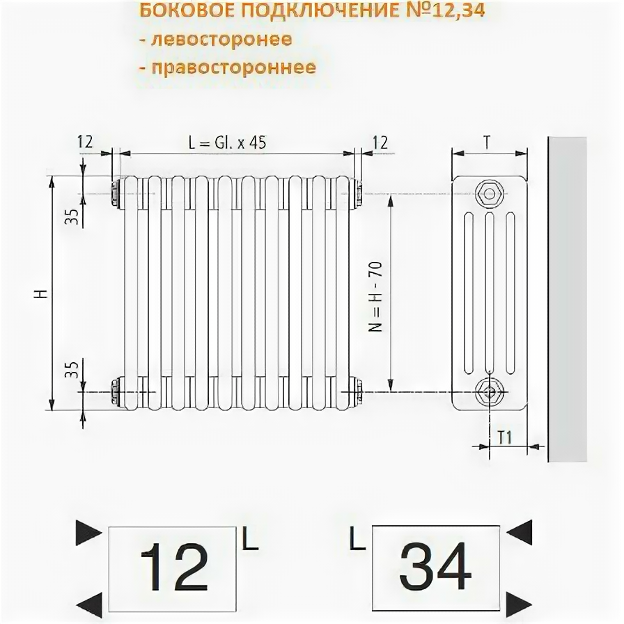 Радиатор секционный Arbonia 3050/18 боковое подключение (без накладок) № 12 3/4 RAL 9016 Белый информация: