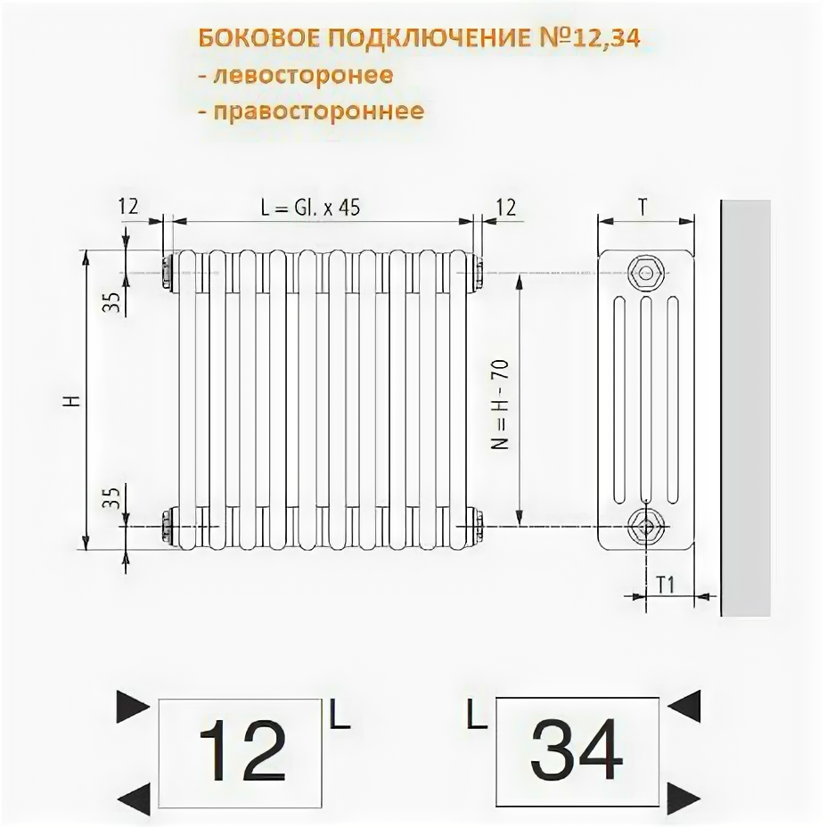 Радиатор секционный Arbonia 3180/10 боковое подключение (без накладок) № 12 3/4 RAL 7016 информация: