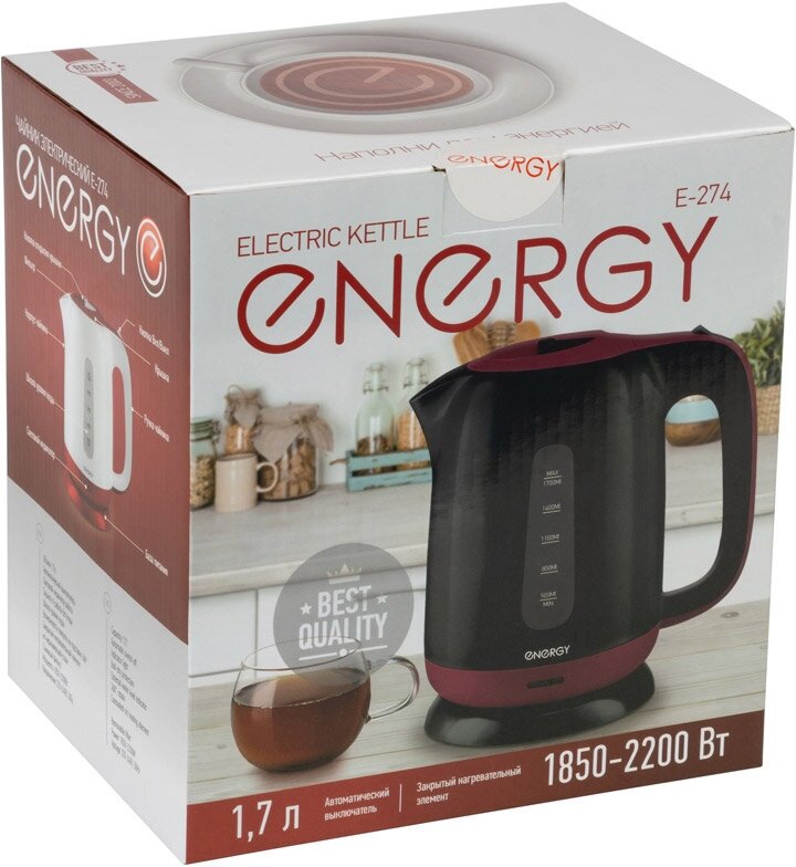 Чайник электрический Energy E-274, пластик, 1,7 л, 2200 Вт, бело-красный Energy 9461871 .
